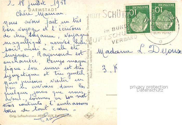 73560753 alte Postkarte Darmstadt Fliegeraufnahme postalisch gelaufen Erhaltung siehe scans [KathaD81] KatCode: 11110006411000