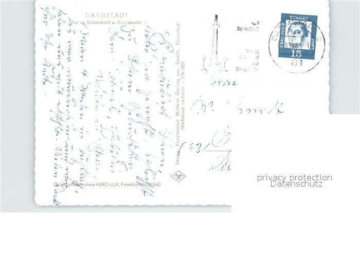 32573884 alte Postkarte Darmstadt Fliegeraufnahme postalisch gelaufen Erhaltung siehe scans [WerneD78] KatCode: 11110006411000