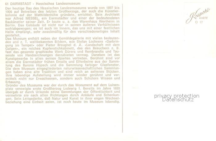 73263746 Darmstadt Hessisches Landesmuseum postalisch nicht gelaufen Erhaltung siehe scans [LiesaD40] KatCode: 11110006411000