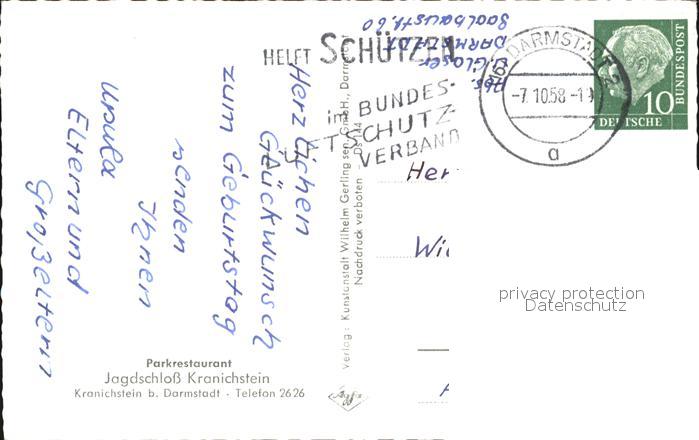 72392806 alte Postkarte Darmstadt Jagdschloss Kranichstein postalisch gelaufen Erhaltung siehe scans KatCode: 11110006411000