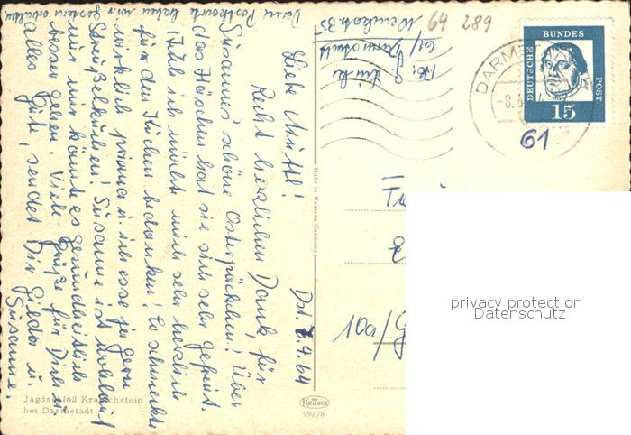 72236896 alte Postkarte Darmstadt Jagdschloss Kranichstein postalisch gelaufen Erhaltung siehe scans KatCode: 11110006411000