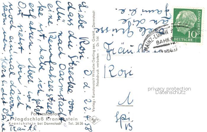73369632 alte Postkarte Darmstadt Jagdschloss Kranichstein postalisch gelaufen Erhaltung siehe scans [KathaD81] KatCode: 11110006411000