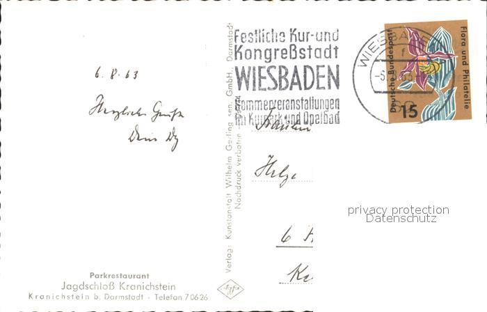 72095614 alte Postkarte Darmstadt Jagdschloss Kranichstein Parkrestaurant postalisch gelaufen Erhaltung siehe scans KatCode: 11110006411000