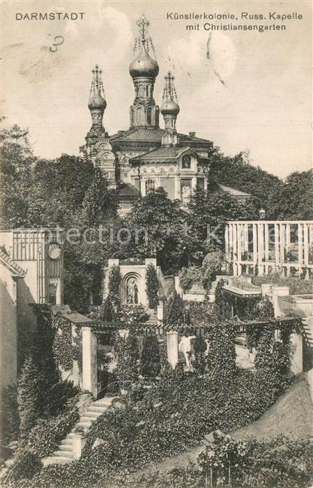 43510373 alte Postkarte Darmstadt K?nstlerkolonie Russ. Kapelle mit Christiansgarten postalisch gelaufen Erhaltung siehe scans [LiesaD40] KatCode: 11110006411000