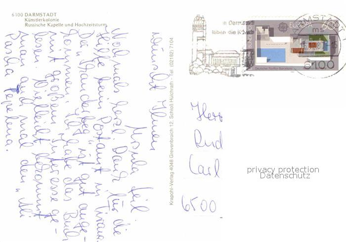 72825280 alte Postkarte Darmstadt Kuenstlerkolonie Russische Kapelle Hochzeitsturm postalisch gelaufen Erhaltung siehe scans [FriedD77] KatCode: 11110006411000