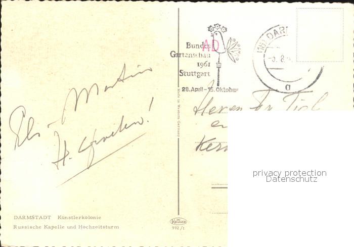 72462111 alte Postkarte Darmstadt Kuenstlerkolonie Russische Kapelle Hochzeitsturm postalisch gelaufen Erhaltung siehe scans KatCode: 11110006411000