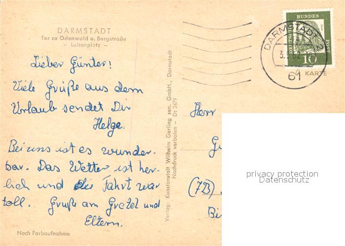 73549289 alte Postkarte Darmstadt Luisenplatz postalisch gelaufen Erhaltung siehe scans [WerneD78] KatCode: 11110006411000