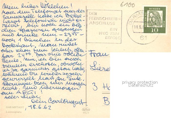 73128864 alte Postkarte Darmstadt Luisenplatz postalisch gelaufen Erhaltung siehe scans [KathaD81] KatCode: 11110006411000