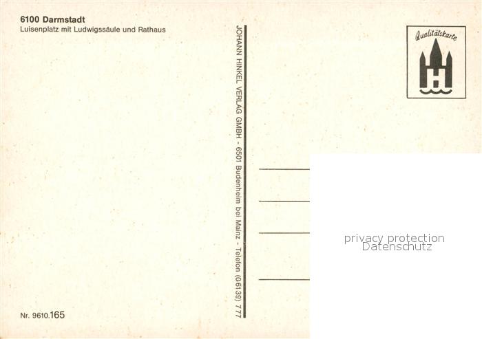 73263744 Darmstadt Luisenplatz mit Ludwigssaeule und Rathaus postalisch nicht gelaufen Erhaltung siehe scans [LiesaD40] KatCode: 11110006411000