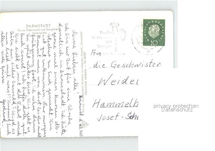 72136221 alte Postkarte Darmstadt Luisenplatz Saeule postalisch gelaufen KatCode: 11110006411000