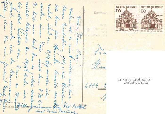 72797005 alte Postkarte Darmstadt Marktplatz mit Brunnen postalisch gelaufen Erhaltung siehe scans [LiesaD40] KatCode: 11110006411000