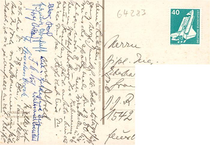 73902650 alte Postkarte Darmstadt Marktplatz mit Rathaus und Brunnen postalisch gelaufen Erhaltung siehe scans [FriedD77] KatCode: 11110006411000