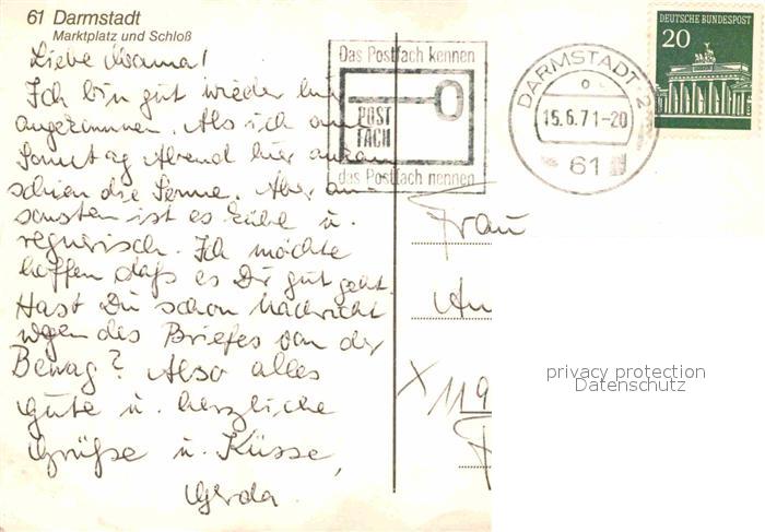 72848922 alte Postkarte Darmstadt Marktplatz Schloss Brunnen postalisch gelaufen Erhaltung siehe scans [FriedD77] KatCode: 11110006411000