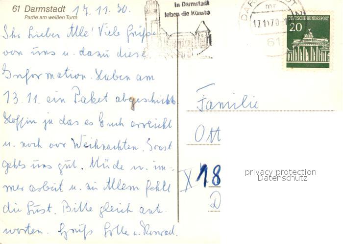 73609012 alte Postkarte Darmstadt Partie am weissen Turm postalisch gelaufen Erhaltung siehe scans [WerneD78] KatCode: 11110006411000