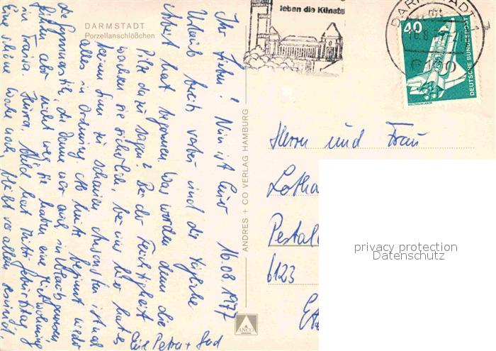 72793254 alte Postkarte Darmstadt Porzellanschloesschen postalisch gelaufen Erhaltung siehe scans [LiesaD40] KatCode: 11110006411000