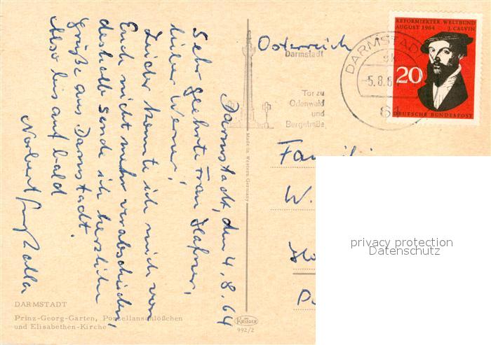 73357752 alte Postkarte Darmstadt Prinz Georg Garten Porzellanschloesschen Elisabethen Kirche postalisch gelaufen Erhaltung siehe scans [FriedD77] KatCode: 11110006411000