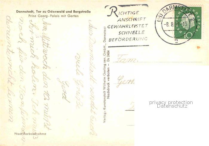 72793226 alte Postkarte Darmstadt Prinz Georg Palais mit Garten postalisch gelaufen Erhaltung siehe scans [LiesaD40] KatCode: 11110006411000