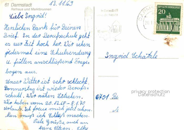 72764197 alte Postkarte Darmstadt Rathaus Marktbrunnen postalisch gelaufen Erhaltung siehe scans [NatalD47] KatCode: 11110006411000