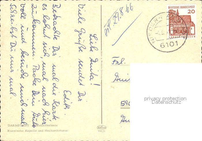 72505856 alte Postkarte Darmstadt Russische Kapelle Hochzeitsturm postalisch gelaufen Erhaltung siehe scans KatCode: 11110006411000
