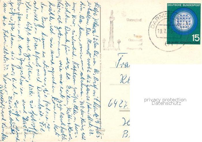 73357751 alte Postkarte Darmstadt Schloss Marktplatz Brunnen postalisch gelaufen Erhaltung siehe scans [FriedD77] KatCode: 11110006411000