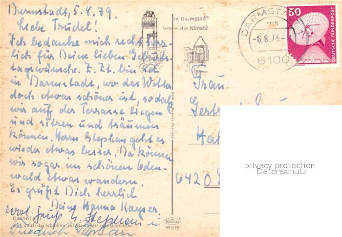 73040703 alte Postkarte Darmstadt Schlosstor Marktplatz Kirche postalisch gelaufen Erhaltung siehe scans [NatalD47] KatCode: 11110006411000