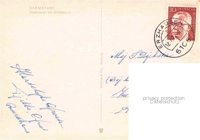 72865309 alte Postkarte Darmstadt Stadtmauer mit Hinkelsturm postalisch gelaufen Erhaltung siehe scans [FriedD77] KatCode: 11110006411000