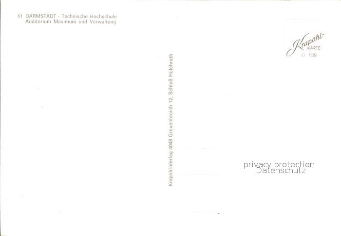 72417620 Darmstadt Techn Hochschule Auditorium Maximum postalisch nicht gelaufen Erhaltung siehe scans KatCode: 11110006411000