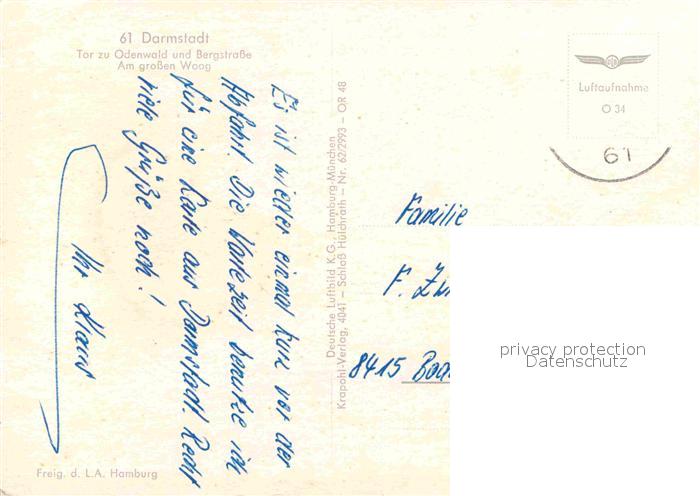 72776560 alte Postkarte Darmstadt Waag Luftaufnahme postalisch gelaufen Erhaltung siehe scans [KathaD81] KatCode: 11110006411000