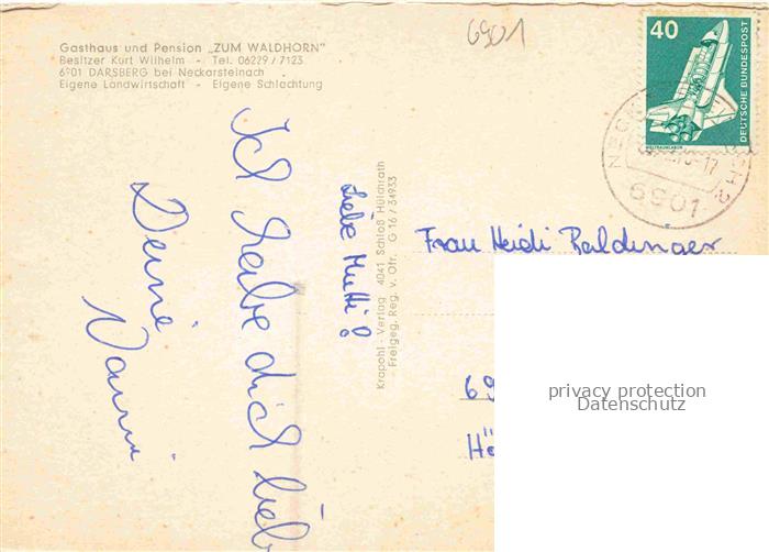 74048491 alte Postkarte Darsberg Neckarsteinach Bergstrasse Hessen Fliegeraufnahme postalisch gelaufen Erhaltung siehe scans [WerneD78] KatCode: 11110006431018