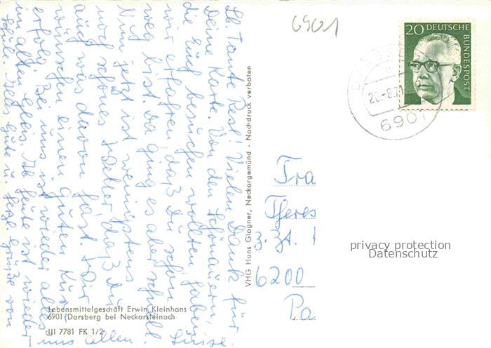 74035802 alte Postkarte Darsberg Neckarsteinach Bergstrasse Hessen Panorama SPAR Kleinhans postalisch gelaufen Erhaltung siehe scans [WerneD78] KatCode: 11110006431018