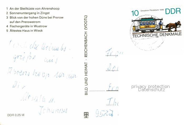72703362 alte Postkarte Darss Region Ostsee Steilkueste Ahrenshoop Sonnenuntergang Zingst Hohe Duene Prerow Fischergeraete Wustrow aeltestes Haus Wieck postalisch gelaufen Erhaltung siehe scans [FriedD77] KatCode: 11110013057091