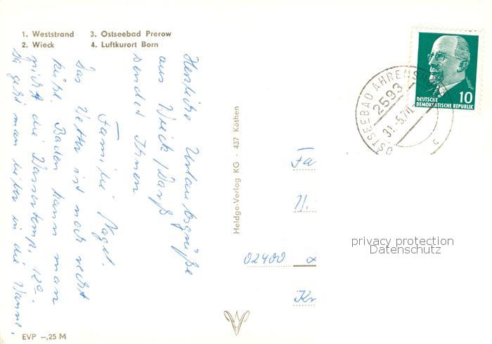 73834565 Darss Region Ostsee Weststrand Wieck Ostseebad Prerow Luftkurort Born postalisch nicht gelaufen Erhaltung siehe scans [WerneD78] KatCode: 11110013057091