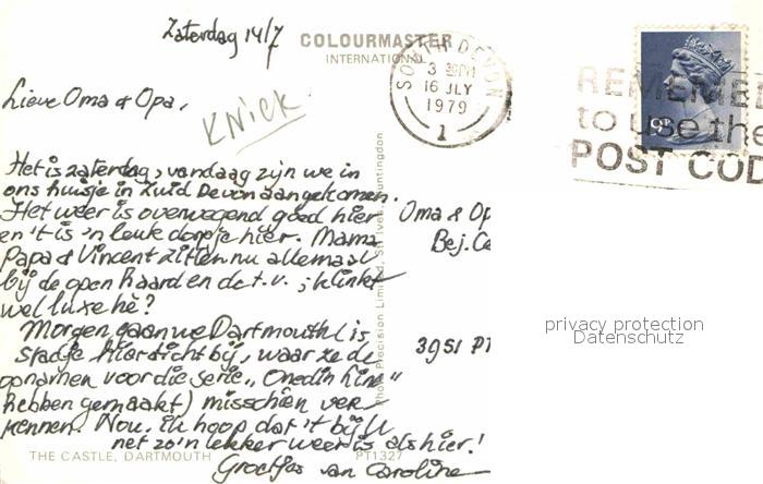 old postcard Dartmouth Castle postalisch gelaufen Erhaltung siehe scans [KathaD81]