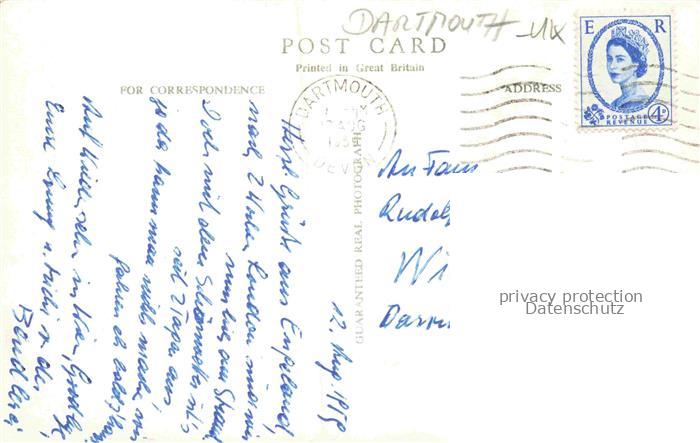 Dartmouth Townstal Devon UK Guardian Castles Darts Mouth postalisch gelaufen Fliegeraufnahme Erhaltung siehe scans [IrynaD87] Fliegeraufnahme alte Postkarte Iryn Katcode 11570UKK4K43UG