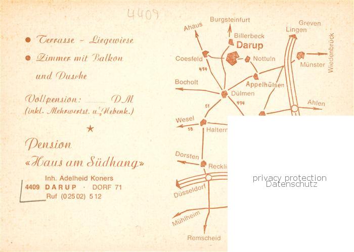 73864966 Darup Pension Haus am Suedhang Gastraeume Zimmer postalisch nicht gelaufen Werbekarte (keine Postkarte) Erhaltung siehe scans [WerneD78] KatCode: 11110005558032