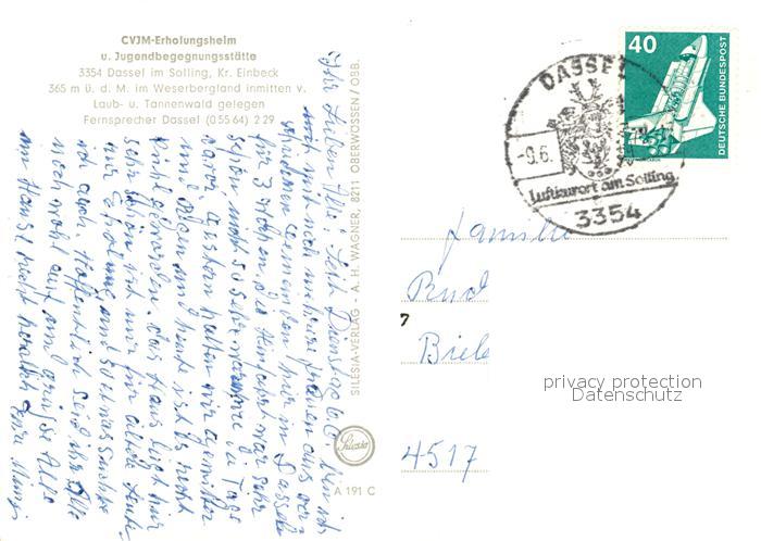 73124187 alte Postkarte Dassel Solling CVJM-Erholungsheim postalisch gelaufen Erhaltung siehe scans [LiesaD40] KatCode: 11110003155003