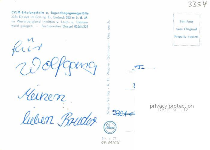 72919137 Dassel Solling CVJM Erholungsheim postalisch nicht gelaufen Erhaltung siehe scans [WerneD78] KatCode: 11110003155003