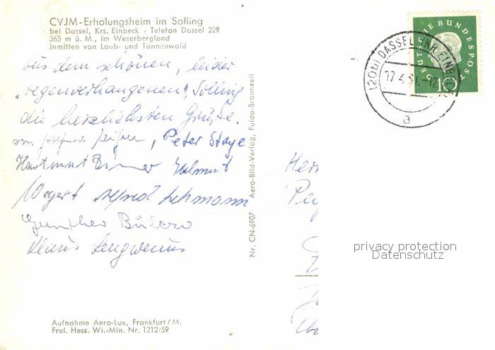 72708593 alte Postkarte Dassel Solling CVJM Erholungsheim Fliegeraufnahme postalisch gelaufen Erhaltung siehe scans [FriedD77] KatCode: 11110003155003