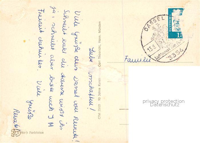 73813305 alte Postkarte Dassel Solling CVJM Erholungsheim Im Luisenpark Kirche mit Ratskeller Erholungsheim postalisch gelaufen Erhaltung siehe scans [WerneD78] KatCode: 11110003155003