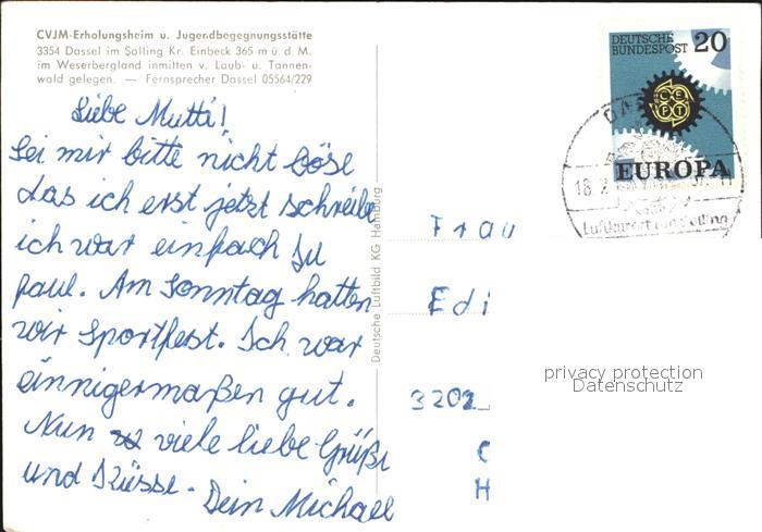 72580341 alte Postkarte Dassel Solling CVJM Erholungsheim Luftaufnahme postalisch gelaufen Erhaltung siehe scans [KathaD79] KatCode: 11110003155003