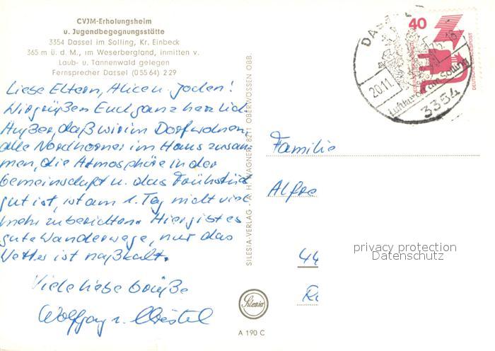 73739335 alte Postkarte Dassel Solling CVJM Erholungsheim und Jugendbegegnungsstaette postalisch gelaufen Erhaltung siehe scans [WerneD78] KatCode: 11110003155003