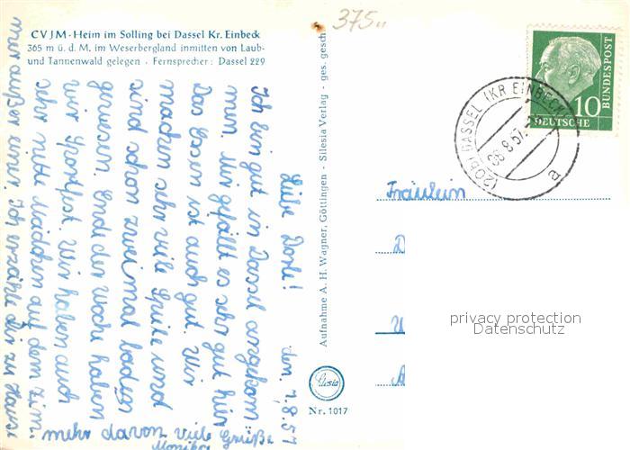 72688135 alte Postkarte Dassel Solling CVJM Heim postalisch gelaufen Erhaltung siehe scans [FriedD77] KatCode: 11110003155003