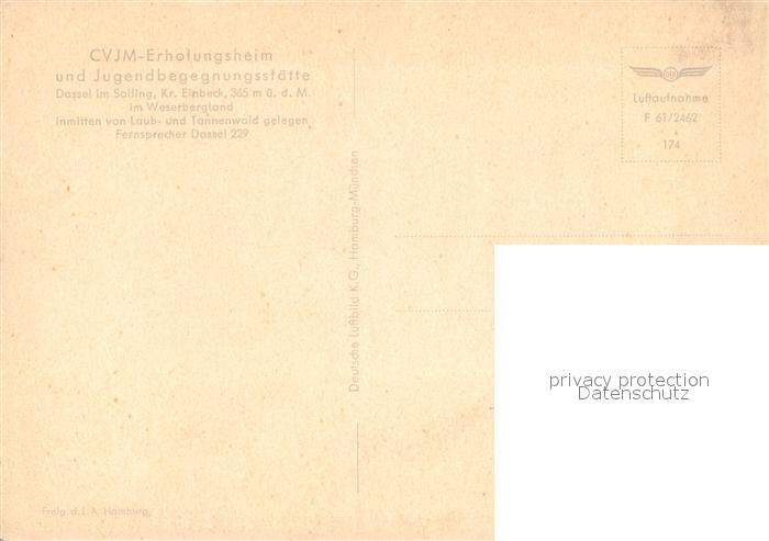 73165260 Dassel Solling Fliegeraufnahme CVJM Erholungsheim Jugendbegegnungsstaette postalisch nicht gelaufen Erhaltung siehe scans [KathaD81] KatCode: 11110003155003