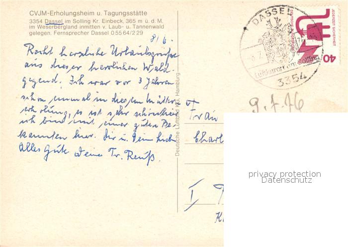 73165259 alte Postkarte Dassel Solling Fliegeraufnahme CVJM Erholungsheim Tagungsstaette postalisch gelaufen Erhaltung siehe scans [KathaD81] KatCode: 11110003155003