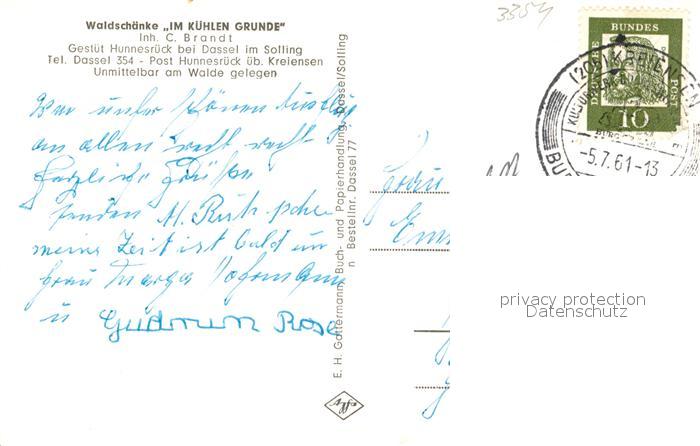43352509 alte Postkarte Dassel Solling Waldschaenke Im kuehlen Grunde postalisch gelaufen Erhaltung siehe scans [WerneD78] KatCode: 11110003155003