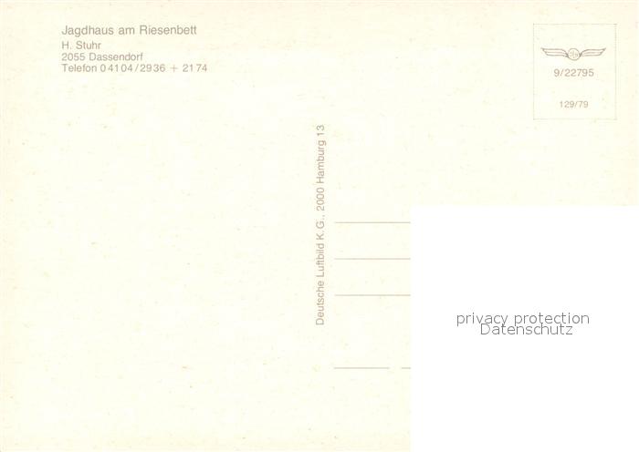 73724895 Dassendorf Jagdhaus am Riesenbett Fliegeraufnahme postalisch nicht gelaufen Erhaltung siehe scans [WerneD78] KatCode: 11110001053023