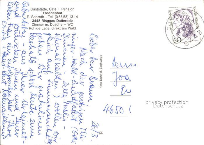 72567679 alte Postkarte Datterode Fasanenhof postalisch gelaufen Erhaltung siehe scans [KathaD79] KatCode: 11110006636010