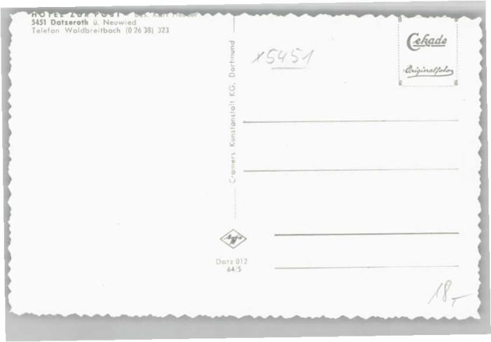 40652408 Datzeroth Hotel zur Post KatCode 11110007138010