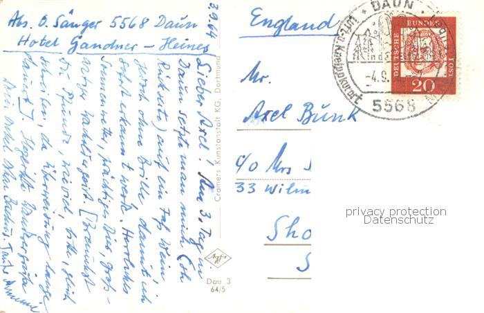73779801 alte Postkarte Daun Eifel Bacchus Statue Kneipp- und Mineralheilbad postalisch gelaufen Erhaltung siehe scans [FriedD77] KatCode: 11110007233501