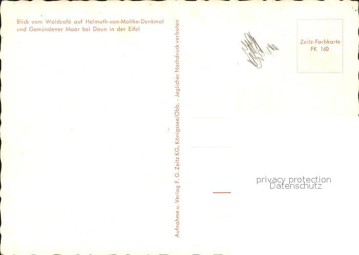 72481795 Daun Eifel Blick Waldcafe auf Helmuth von Moltke Denkmal Gemuendener Maar postalisch nicht gelaufen Erhaltung siehe scans KatCode: 11110007233501